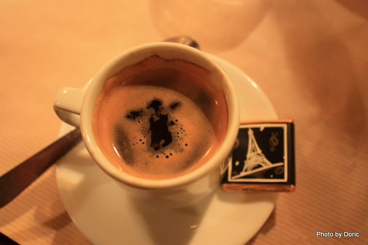 牧玨點的套餐有附咖啡(Espresso),咖啡沫的樣子剛好像個張手歡迎的小人。