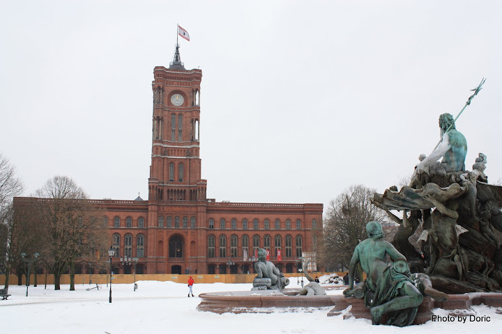 怎麼個方便法呢?從我旅館到市政廳 瑪莉恩教堂 博物館島 柏林大教堂 複合式購物中心繞一整圈回來,步行只要三十分鐘左右;柏林的路不好走,不是鋪不平的關係,而是因為積雪積呀積呀 人們踩過來踩過去,鬆散的雪粉經這樣不斷踩踏 下了又融 融了又下,儘管有灑碎石子防止雪粉結在一塊,但還是擋不住這樣累積下來,地上早已是厚厚的堅冰,又硬又滑,而且坑坑洞洞,走起來要特別小心。