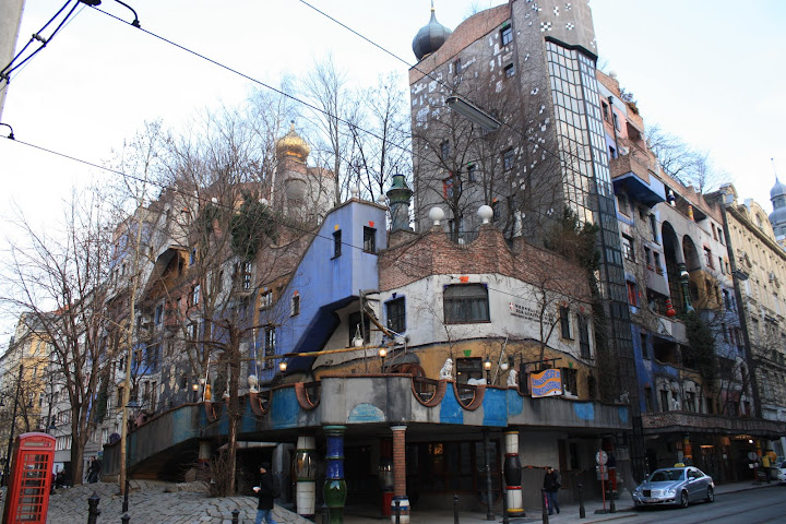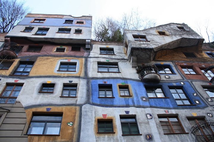 維也納有那麼古典繽紛的房子,也有這種新潮有趣的建築。這是百水公寓博物館,不是原初的公寓。Hundertwasserhaus是由Friedensreich Hundertwasser先生設計,Hundertwasser意譯就是百水,而誠如Haus之名,其功能本來就是拿來住的,至今也仍然當成住房公寓使用。但因為百水先生設計的公寓太創新了,吸引了無數的觀光客前來朝聖,對住民來說久了也是種騷擾XD 每天一堆人在家門前拍照吵鬧,肯定是受不了。