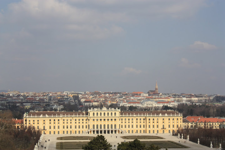 逛完宮內,我們爬上熊布倫宮後面的山丘,眺望維也納。