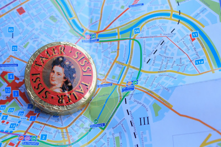 這是Sissi公主巧克力餅,下面是維也納市區圖。Sissi公主與莫札特是兩大維也納財源哪,自然要幫他們推出各式各樣的週邊商品,莫札特圓球巧克力,與Sissi公主巧克力餅就是其二。我們一致認為Sissi公主獲勝,巧克力餅有夾心,配的是橘醬,不像莫札特球那樣太甜。